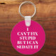 O chaveiro de botão redondo apresenta o texto "Não consigo consertar o estúpido, mas posso adaptá-lo" em um fundo rosa quente ou em qualquer cor que você escolher, perfeito para um paramédico, enfermeiro ou médico. Chaveiros fazem presentes divertidos para familiares e amigos ou criam por si mesmos.
