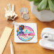 Design vibrante e colorido com um esqueleto feminino tomando café. O texto colorido diz: "O aviso não toca bem com os outros". Esse design está disponível em uma grande variedade de produtos.
