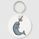 Here we see a cartoon narwhale playing with a pink iced donut.