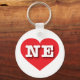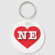 Este chaveiro apresenta um coração vermelho vibrante contendo as letras maiúsculas, brancas e em negrito NE, a abreviação oficial do estado de Nebraska, o estado do pelotão.