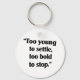 Uma design de citação motivadora e minimalista que diz: "Muito jovem para se estabelecer, muito ousada para parar." Esta imagem é perfeita para qualquer pessoa que se esforça pelos seus sonhos, abraçando a sua juventude e recusando-se a comprometer os seus objetivos. Compartilhe-o como um lembrete para ficar ousado, continuar a avançar, e nunca se contentar com menos do que merece.