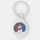 Um delicioso boneco de neve vestindo um lenço vermelho festivo e chapéu, em pé numa paisagem nevada com flocos de neve caindo e árvores verdes no fundo. Perfeito para ilustrações festivas ou de inverno.