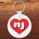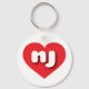 Esta cadeia de teclas apresenta um coração vermelho vibrante contendo as letras maiúsculas nj, brancas e em negrito, arredondadas, uma abreviação lúdica para New Jersey, o estado do jardim.