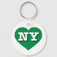 Este chaveiro apresenta um coração verde vibrante contendo as letras maiúsculas, brancas e em negrito NY, a abreviação oficial para o estado de Nova Iorque.
