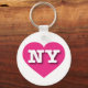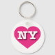Esta cadeia-chave apresenta um coração rosa-quente vibrante contendo as letras maiúsculas, brancas, em negrito, NY, a abreviação oficial para Nova Iorque, o estado do império.