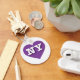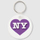 Este chaveiro apresenta um coração roxo vibrante contendo as letras maiúsculas, brancas, em negrito, NY, a abreviação oficial de Nova York, o estado do império.