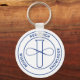 Chaveiro com o selo NOBCChE em azul de um lado e o logotipo NOBCChE do outro.