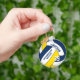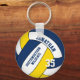 Este chaveiro de vôlei com nome de equipe apresenta um vôlei azul, amarelo e branco sobre o qual você pode personalizar o nome do jogador e o número de camisa mais a equipe da escola e o nome do mascote - por katz_d_zynes