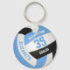 Este chaveiro de desportista com tema de vôlei apresenta um vôlei azul-claro, preto e branco com aspecto realista sobre o qual você pode personalizar o nome do jogador & jersey number mais nome de escola ou clube e nome de mascote em uma letra estilo de letra de varsidade - por katz_d_zynes | pesquisar as cinzas azuis e azuis de TODOS os katzdzynes ou as equipes de voleibol azul e preto cores >>> https://www.zazzle.com/store/katz_d_zynes/products?cg=196655886495428252