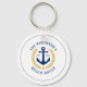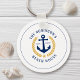 Um chaveiro de metal de estilo na moda náutico com seu nome de família personalizado e sua casa de praia, casa de lago ou outro texto desejado e data estabelecida. Possui uma âncora de barco personalizada, com folhas de ouro estilo laurel e uma estrela em branco ou personalize facilmente a cor base para corresponder à sua decoração ou tema atual. Excelente para acentuar as chaves da casa de férias da sua família.