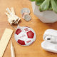 Este chaveiro de futebol feminino apresenta uma bola de futebol tradicional com painéis vermelhos e brancos - os painéis vermelhos são misturados com um padrão caleidoscópico floral - personalize o nome do jogador, o monograma, o número de camisa e o ano escolar - por katz_d_zynes