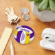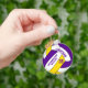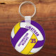 Este chaveiro de vôlei de meninos roxos, amarelos e brancos com o nome da equipe apresenta um vôlei tricolor sobre o qual você pode personalizar o nome do jogador e o número de camisa mais o nome da escola e do mascote - por katz_d_zynes | pesquisa A equipe de vôlei roxo e ouro de TODOS os katzdzynes colore presentes >> https://www.zazzle.com/store/katz_d_zynes/products?cg=196453461113617790