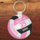 Este chaveiro de tema fofo de vôlei apresenta um vôlei rosa, preto e branco com aspecto realista sobre o qual você pode personalizar o nome do jogador & jersey number mais nome da escola ou do clube e nome do mascote em uma letra estilo varsity - por katz_d_zynes