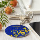 Azul e ouro floral, estilo real e elegante, embelezado, chaveiro personalizado. Personalize com seus próprios nomes.