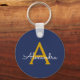 Chaveiros com nomes marinhos de Monograma Simples Azul e Dourado de Script (Cadeia-Chave). Isto faz o doce e perfeito aniversário de 16 anos, casamento, chá de panela, aniversário, chá de fraldas ou festa de solteira presente para alguém que ama luxo de luxo e estilos quíticos.