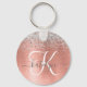 Personalize facilmente este chaveiro de chic moderno com brilho cintilante bonito prateado num fundo metálico escovado de rosa dourado.