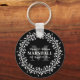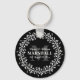 Floral Wreath Calliografia Chaveiro Monograma em preto e branco - presente de chaveiro preto-e-branco com monograma Na moda para um casal recém-casado que apresenta um monograma personalizado, nomes de noivas e noivos, sobrenome e modelos de data de casamento cercados por uma coroa circular ousada. Um presente cuidadoso para uma festa de limpeza de casa ou um presente de casamento. ©edulwhimsypaperie