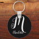 Chaveiro Nome do Monograma do Script Branco e Preto Glamoro