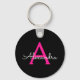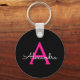 Chaveiro Nome do Monograma Girly Black Script Hot-Pink