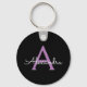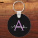 Chaveiro Nome do Monograma Girly de Script Preto Roxo