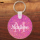 Chaveiro de Nome do Monograma Chic Glitter Glitter Dourado Rosa Concebido com fundo cintilante brilhante bonito e dourado brilhante e monograma de rosa claro inicial no centro. Personalizado com o nome em caracteres brancos de script de caligrafia. Faz uma bela ideia para qualquer ocasião. CLIQUE EM PERSONALIZAR OPÇÃO MODELO E DIGITE NOME E MONOGRAMA