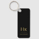 Monograma Clássico Moderno Mínimo Negra Dourada chaveiro