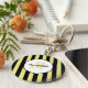 Diga olá para o verão com este chaveiro básico em um padrão de faixas verticais preto-e-verde-preto como o de um besouro pepino. Personalize adicionando seu nome e monograma inicial. Esta é parte da Série Padrões de Verão projetada pela Oh então Girly Boutique.