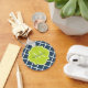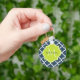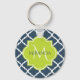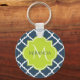 Um elegante marinho azul de quatrefoil, modelado como um chaveiro básico com um crachá escalpado em um verde primavera vibrante que você pode personalizar adicionando seu nome e monograma inicial. Esta é parte da Coleção de Primaveras Azul e Almoço de Limão.