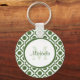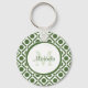 Mostre seu senso de moda com este moderno padrão geométrico verde e branco monograma chaveiro básico com círculos em tons de tendências. Personalize esta design de círculo gráfico ousado adicionando o nome e a inicial monograma da jovem movente.