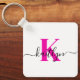 Este simples e elegante chaveiro com seu primeiro nome em uma fonte de script de tendência em branco e sua primeira inicial em uma fonte moderna de boné em rosa-quente é perfeita para suas chaves. É na moda e moderno e, no entanto, muito clássico.