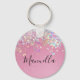 Rosa brilhante, cor-de-rosa, cor-de-rosa, Nome personalizado Monograma chaveiro