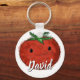 Um tomate vermelho bonito estilo cartoon. Cadeias de chave personalizadas. Design desenhada à mão. Editar nome para personalizar. Dar uma ideia para pessoas de todas as idades que amam tomates e legumes fofos.