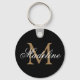 Crie seu próprio chaveiro preto redondo personalizado com seu nome de script de caligrafia personalizado e seu monograma.