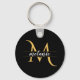 Elegante Dividir Monograma Dourado Preto Nome Personalizado chaveiro