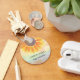 Esta Chaveiro de Instrutor de Yoga botânica moderna é decorada com um girassol amarelo sobre fundo de aquarela. Facilmente personalizável. Original Watercolor © Michele Davies.