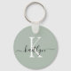 Este moderno chaveiro verde sábio com seu primeiro nome em uma fonte de script de tendência em preto e seu primeiro começo em uma fonte moderna de boné em branco é perfeito para suas chaves.