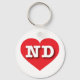 Este chaveiro apresenta um coração vermelho vibrante contendo as letras maiúsculas, brancas e em negrito ND, a abreviação oficial do estado de Dakota do Norte.