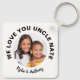 Celebre o melhor tio do mundo com este chaveiro branco de fotos personalizado. Personalize facilmente com uma fotografia favorita (recorte para uma orientação quadrada com o assunto no meio antes de carregar para obter o melhor resultado). Você pode personalizar a expressão "Nós te amamos tio" para algo semelhante em comprimento como "Melhor Tio Nunca" ou "O Maior Tio do Mundo". Na parte inferior você pode adicionar nomes de crianças ou outros textos.
