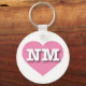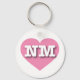Esse chaveiro apresenta um coração cor-de-rosa contendo as letras maiúsculas, brancas, negros, NM, a abreviação do Novo México, a terra do encantamento.