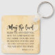 O chaveiro de scripture de aspas inspiracionais retrata um simples fundo de abstrato com aquarela em cores de tons de terra pálidas e um design de script moderno. Ele apresenta a Bênção Aarônica dos Números Versos da Bíblia 6:24-26, "Que o Senhor o abençoe e o mantenha; Que o Senhor faça seu rosto brilhar sobre você e seja gracioso para você; Que o Senhor vire seu rosto em sua direção e lhe dê paz."