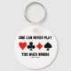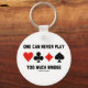 Se você sentir que nunca pode jogar muito bridge e jogar nas últimas horas da manhã em torneios de ponte, você vai gostar deste chaveiro com os quatro trajes de cartas junto com o ditado "Nunca é Possível Jogar Muita Ponte". Faça com que outros façam uma dupla tomada com uma dose de ponte na face/estilo de ponte duplicada hoje!