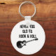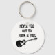 Música rock é eterno, seja jovem ou velha. Esta cadeia-chave apresenta um violão clássico com texto vestido. A mensagem é simples; nunca deixe sua idade te impedir do amor pela música rock.