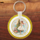 This double-sided, round keychain features a beautiful watercolor-style illustration of a ballerina, like the Sugar Plum Fairy, dancing gracefully by a Christmas tree laden with gifts. The vibrant design is encircled by a stylish gold foil effect border.