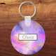 Um chaveiro sonhador personalizado com uma boa combinação de pastéis macios e cores brilhantes. Uma pintura abstrato colorida com uma imagem do espaço cósmico em cores d'água rosa, roxa e amarela. As cores se misturam e se misturam criando nuvens etéreas luminosas com pequenas estrelas cintilantes espalhadas por toda parte.