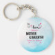 O amor entre mãe e filha não conhece nenhuma distância na escrita mista preto e rosa claro e na inscrição maiúscula com entalhes de rolagem e corações. Colocado em um boque azul pálido com tintas cor-de-rosa.