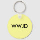 Chaveiro de design WDJ, o que Jesus faria? Com fundo colorido que pode ser mudado para se adequar ao seu gosto