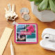 Uma impressionante colagem de fotos tirada em Oahu, Havaí, apresentando uma praia arenosa, palmeiras, um pôr de sol lavanda sobre o horizonte, e um oceano azul aqua. Por https://www.zazzle.com/store/celestesheffey #oahu