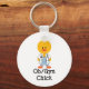 Uma pintinho amarela vestindo esfregões azuis com um estetoscópio em volta do pescoço e um casaco de laboratório com caneta no bolso em camisas Pintinhos OB/GYN, artigos de papelaria e mais material médico e roupa para uma obstetra feminina e ginecologista. Esses itens fazem uma obstetrícia e presentes ginecológicos fofos e engraçados para um formando de estudante de medicina, residente, estagiário, médico ou estudante de medicina. Estúdios, LLC.