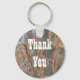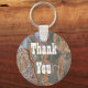 Esta chaveiro de apreciação apresenta uma foto rústica de latido de árvore que captura o latido verde e marrom com linhas curvas. Este lindo padrão de tronco de árvore fornece um fundo terrestre neutro em relação a gênero para "Obrigado", que aparece no centro com letra branca.