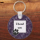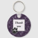 Dizer obrigado a você na sua babá de estimação é simples com esta elegante chaveiro roxa escura. Este design apresenta uma textura marmoreada, fundo roxo profundo com uma impressão de pata preta no canto da caixa de texto sólido. Personalize as palavras "obrigado você", se desejar.